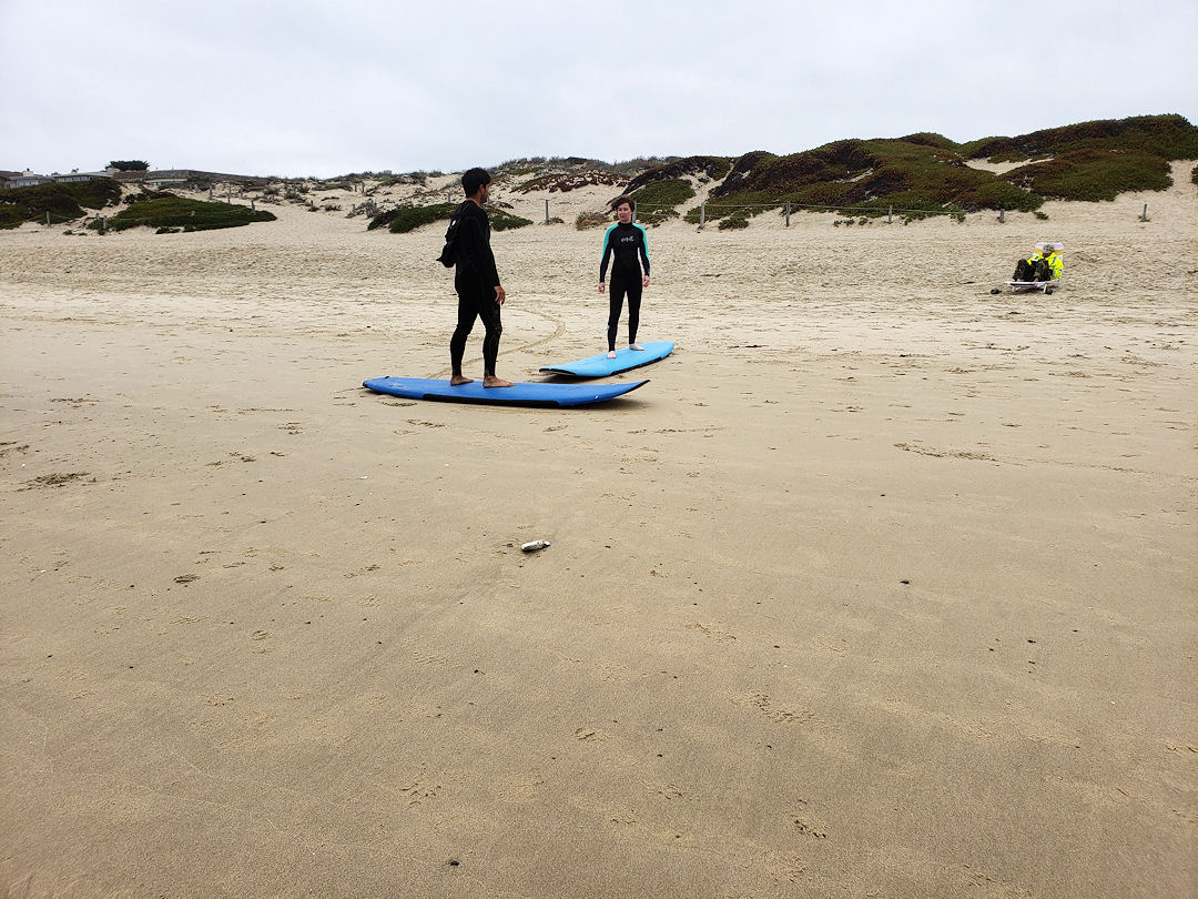 Finally, there was the surf and beach day. While it was cold, we enjoyed ourselves at Del Monte Beach, me with a surf lesson in a wetsuit, the others walking along and taking pictures of the beach. After our time at the beach, we all took a break at the hotel before heading back out and hitting the town. We took our time at the small shops and galleries in the small business district of Monterey.